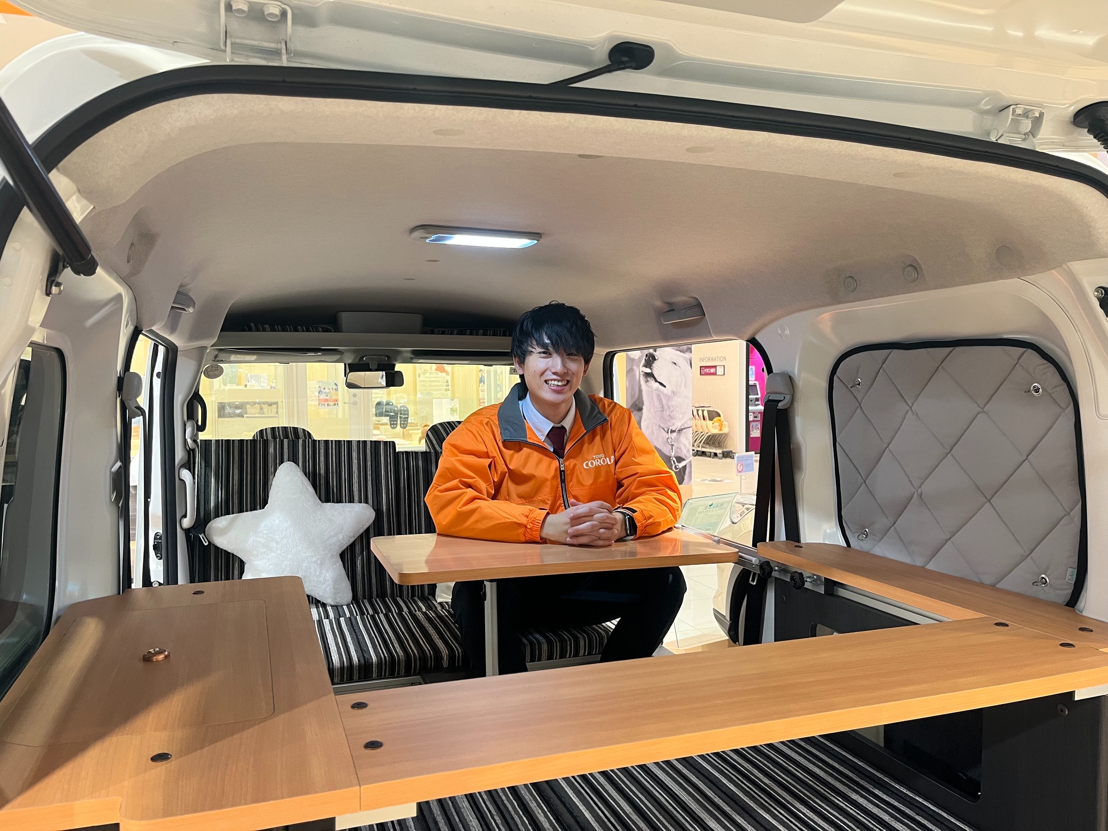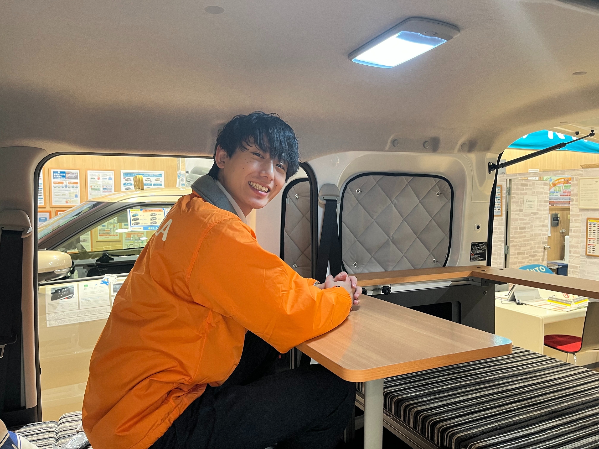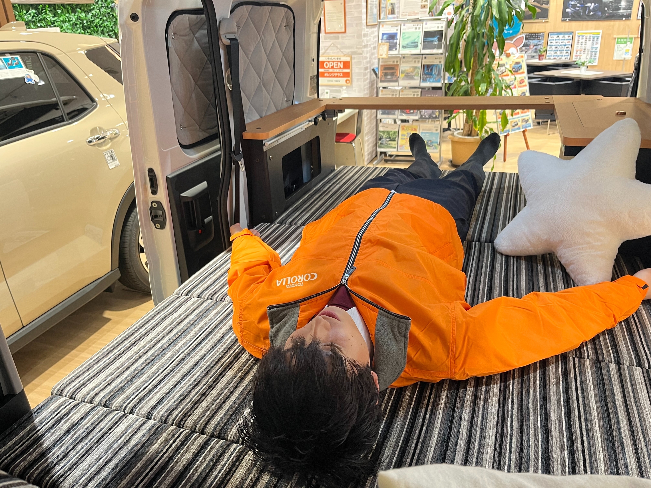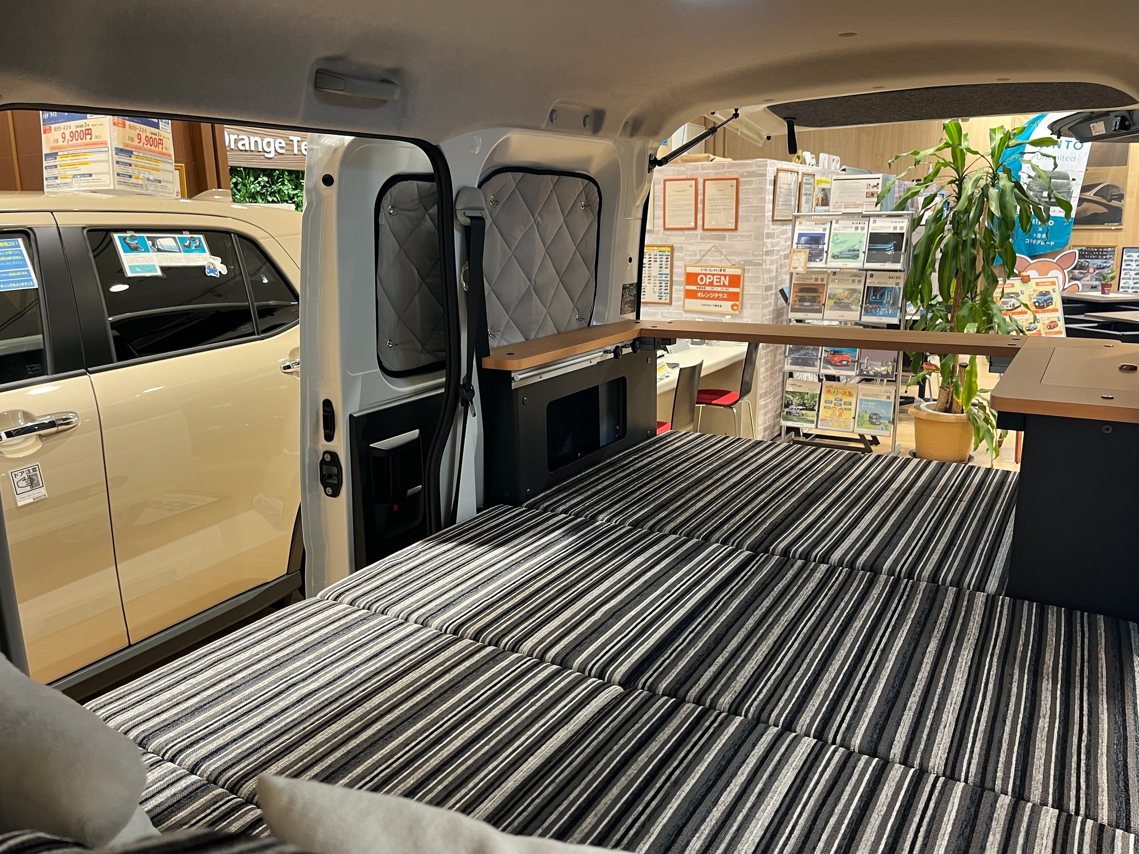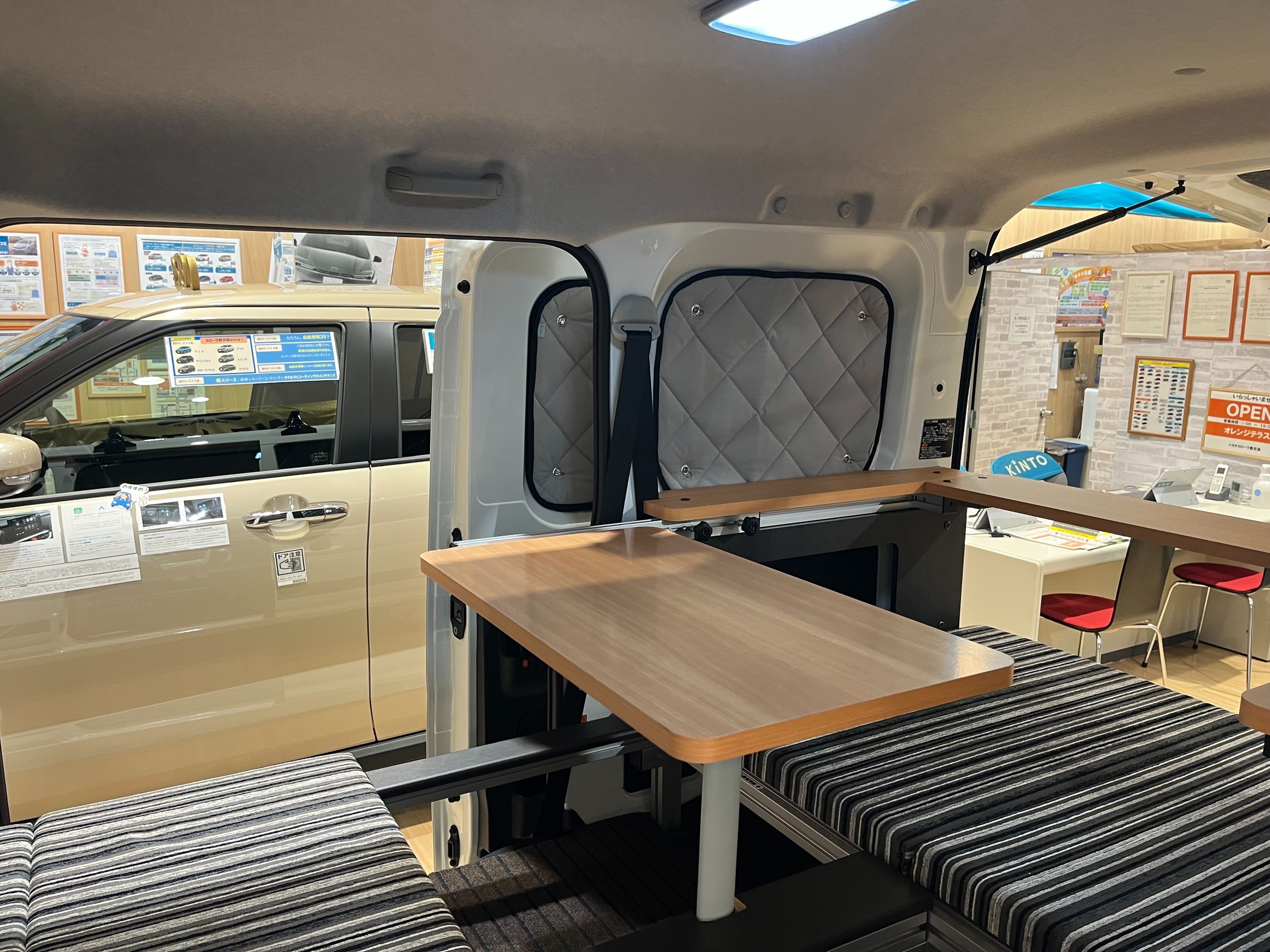 テーブルを出して、まるで自宅の