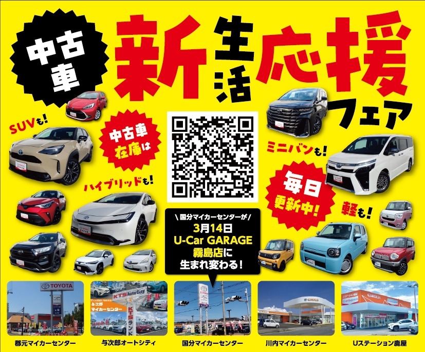 トヨタカローラ鹿児島は約300台の中古車をご準備しています